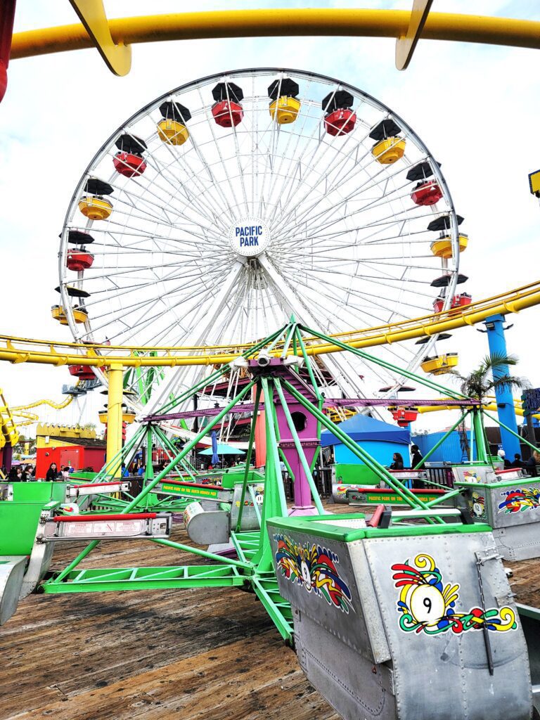 The second we stepped foot on the pier, it felt like we’d entered a whole different world. The air buzzed with laughter, the smell of popcorn and cotton candy filled the air, and those bright amusement park lights sparkled against the darkening sky. We went full-on tourists, riding the Ferris wheel for epic views of the coastline and trying our luck at some classic carnival games. We saw โ but did not try โ the historic steel roller coaster