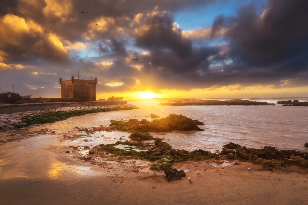 Unlike Marrakech, Essaouira rarely feels overly hot, even in summer. Bring a light jacket or scarf, as evenings and ocean breezes can feel surprisingly cool. Comfortable walking shoes are essential for the cobblestone streets, and donโt forget sunglasses and sunscreen โ the breeze can make you underestimate the strength of the sun.