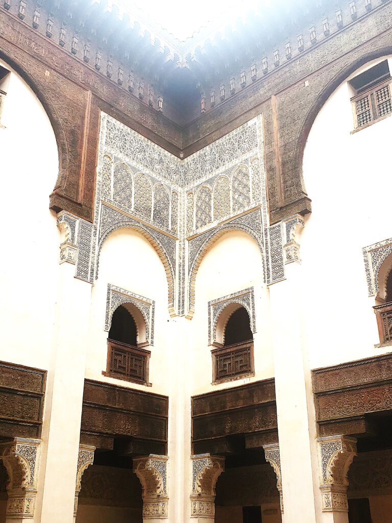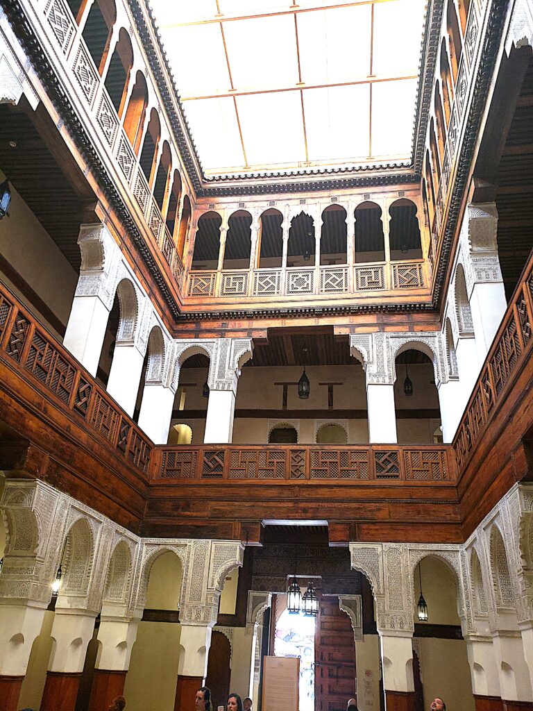 Walking around the university and its adjoining library feels like stepping back in time. The architecture is stunning, with intricate tile work and a peaceful central courtyard that offers a quiet escape from the busy medina.