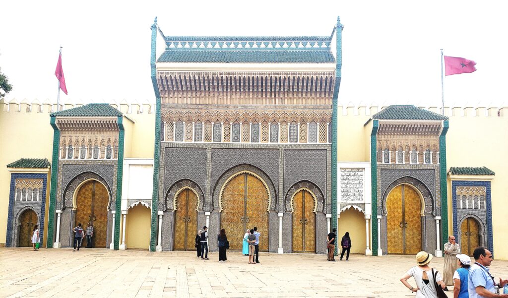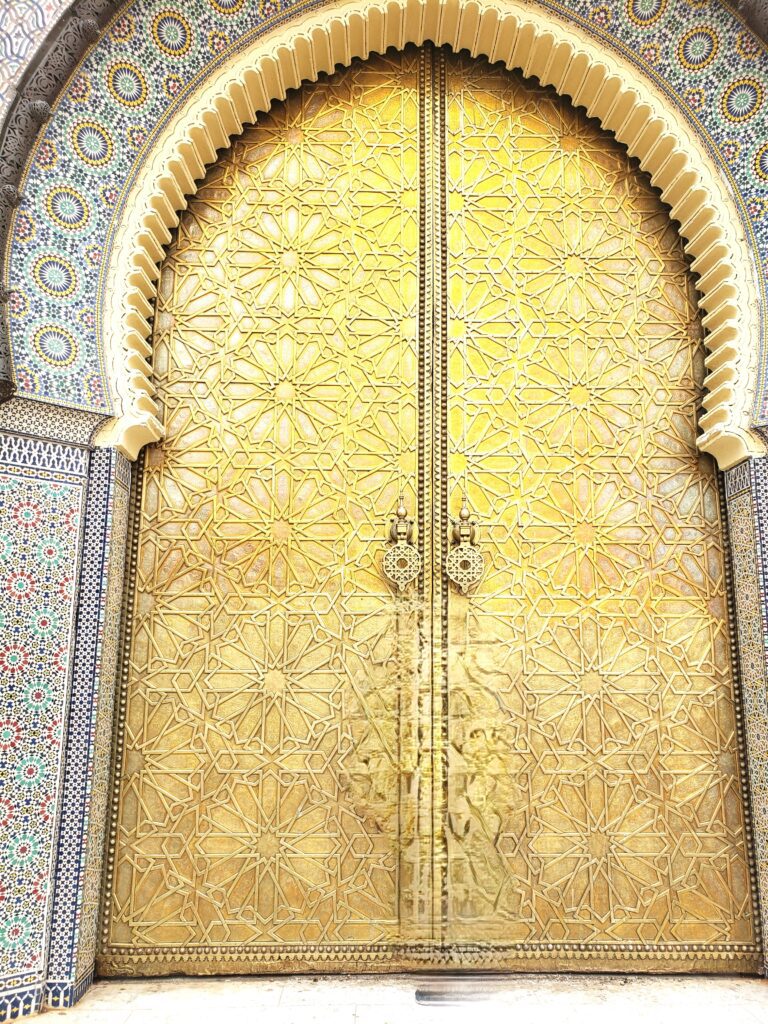 Though you canโt go inside, the Royal Palace in Fes is still a popular place to include on your Fes itinerary. The massive golden doors and intricate mosaics are stunning, and itโs one of the best spots for photos.
