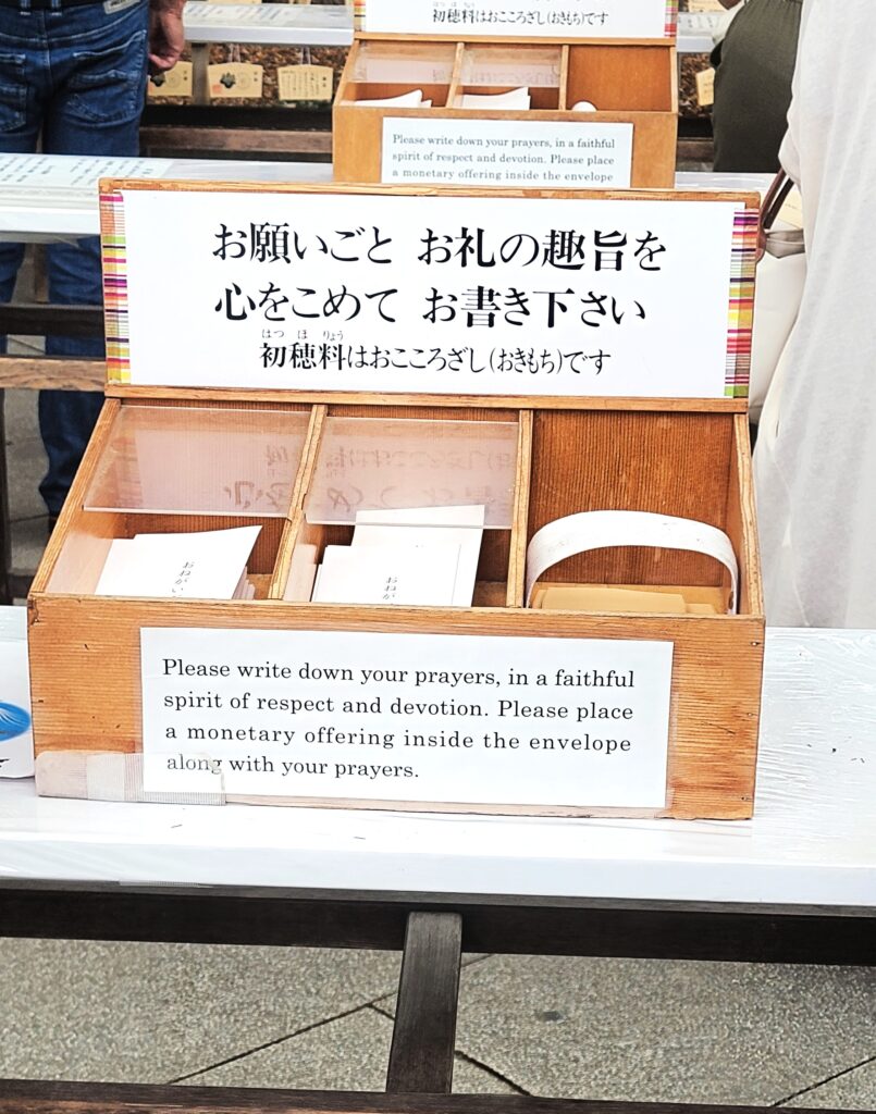 Before we left, we wrote our wishes on wooden ema plaques and hung them alongside hundreds of others at the shrine.
