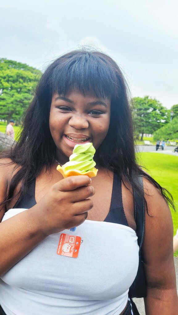 My daughter spotted a small vendor selling matcha ice cream on the grounds and couldnโ€™t resist.